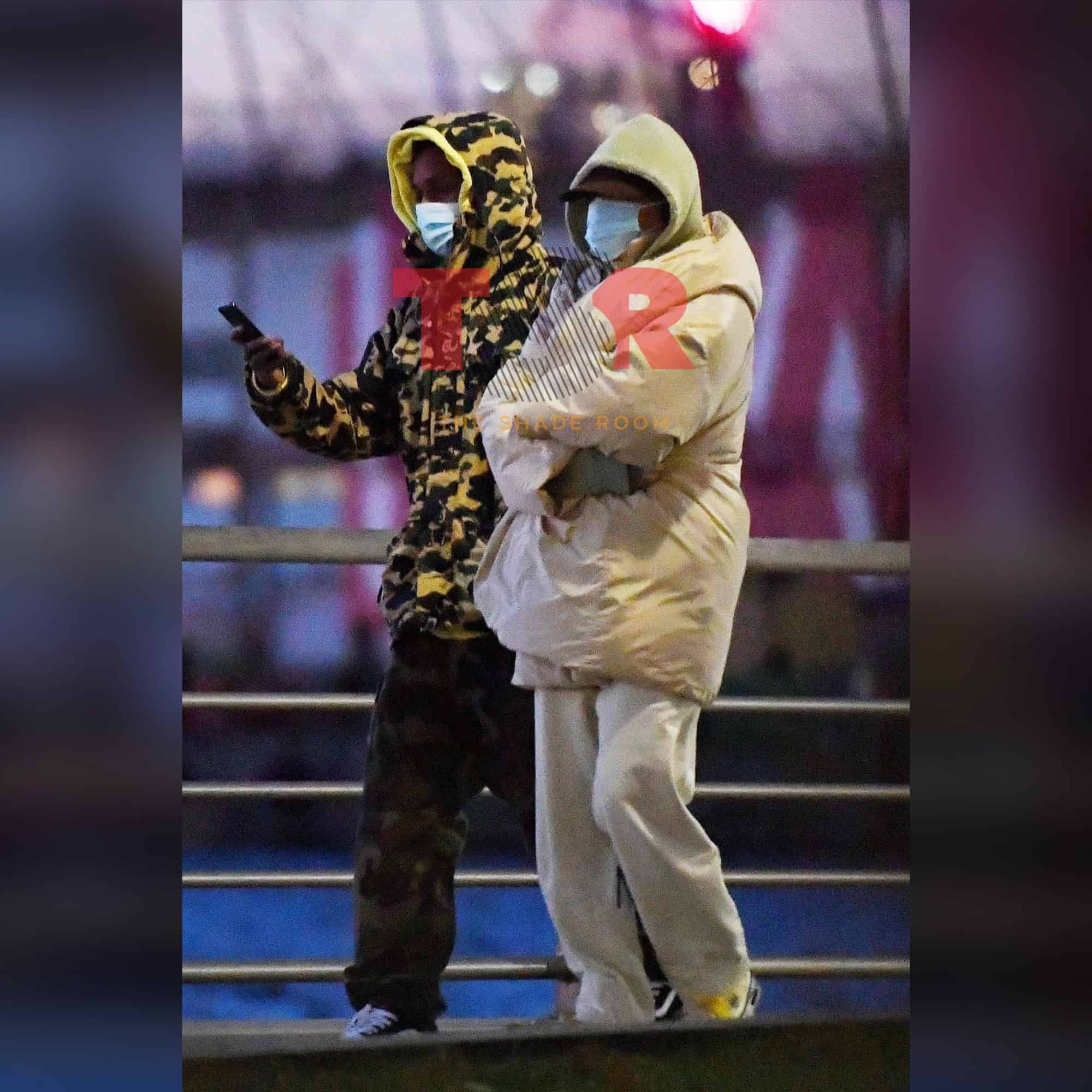 Well, coincidentally, both Rihanna and ASAP were pictured in NYC together on a late night stroll. Rihanna made sure to stay allllll the way masked up. As you can see in the photos, sis is wearing that cap real low and that mask real high. Despite her best efforts, paps still caught her and her new bae Rocky out and about. See below: